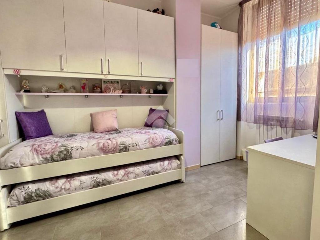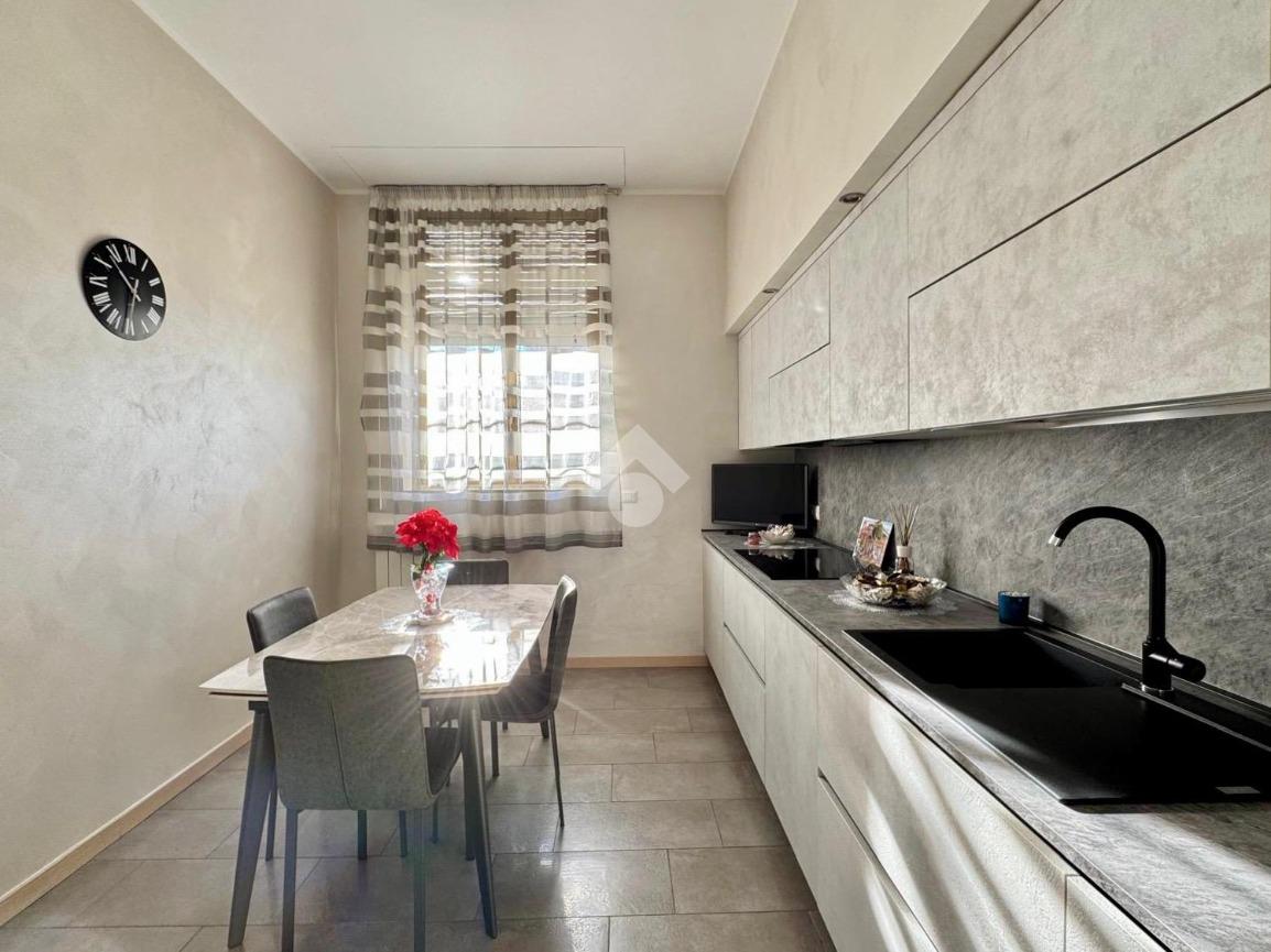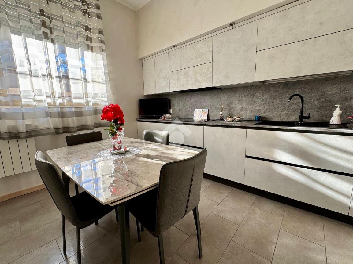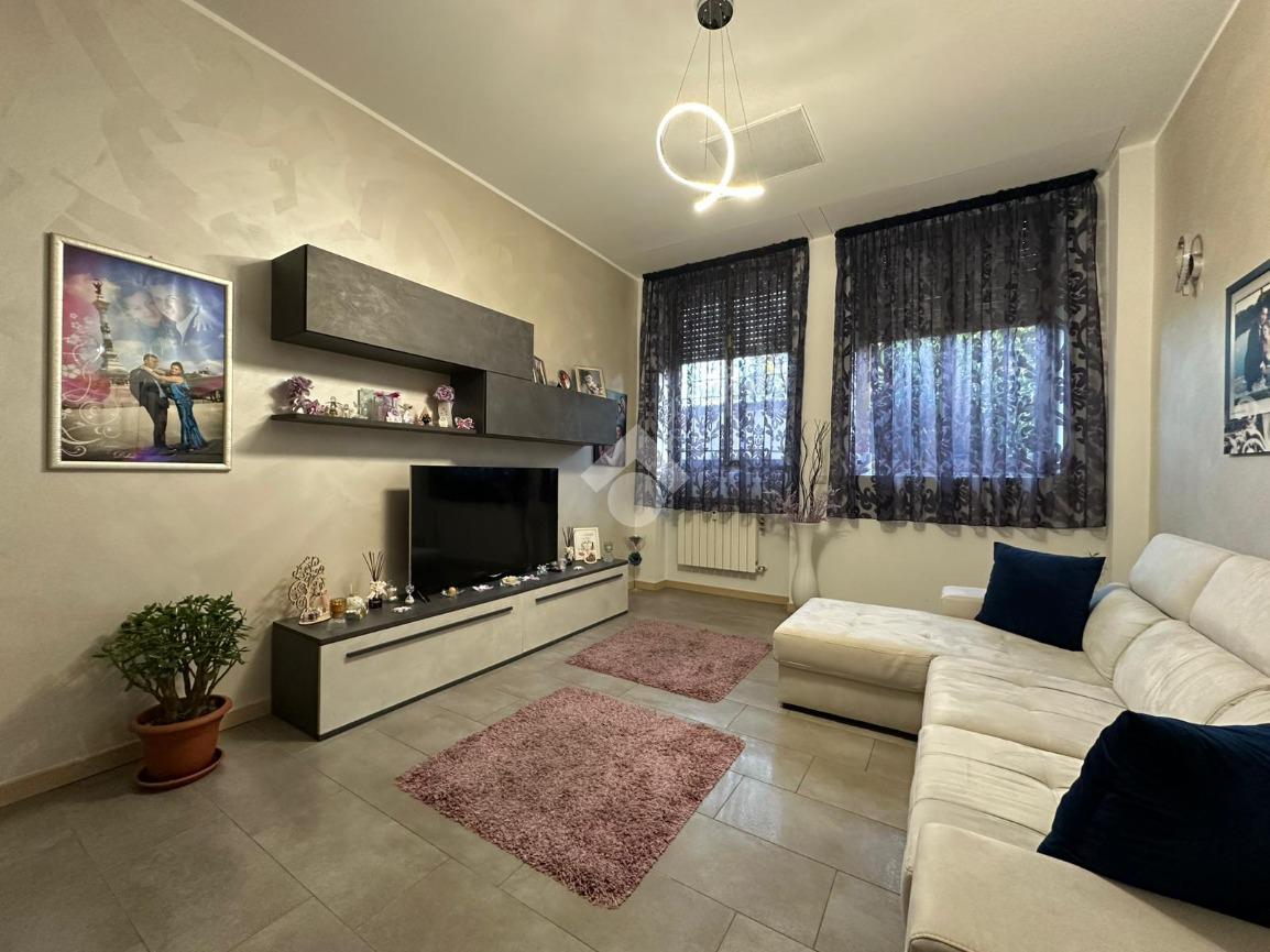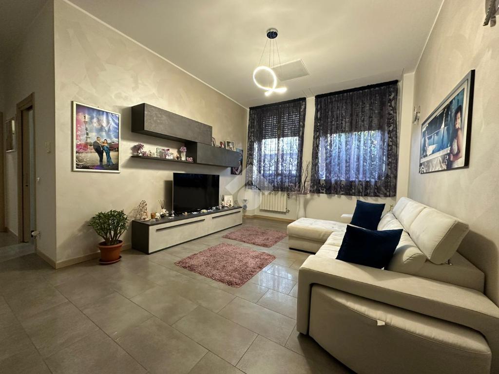 In zona ben servita con bar, supermercati, farmacie, scuole, mezzi di trasporto tra cui la linea bus che portano direttamente al centro città, trilocale in contesto residenziale con giardino condominiale e servizio di portineria. Si propone appartamento ristrutturato nel 2020 di circa 100 mq con cucina abitabile, doppi servizi, ripostiglio e vano cantina. L'abitazione posto ad un piano terra è suddiviso in ampio soggiorno, cucina abitabile, disimpegno con rispostiglio e primo bagno con box doccia. La zona notte è composta da due spaziose camere, un secondo bagno di servizio finestrato. L'immobile vanta di buone finiture, pavimenti e rivestimenti in gres porcellanato oltre a controsoffitto con faretti ed impianto stereo e di climatizzazione caldo/freddo canalizzato. Riscaldamento centralizzato con termo valvole e serramenti in alluminio doppio vetro con tapparelle elettriche. Possibilità di box a parte in locazione.