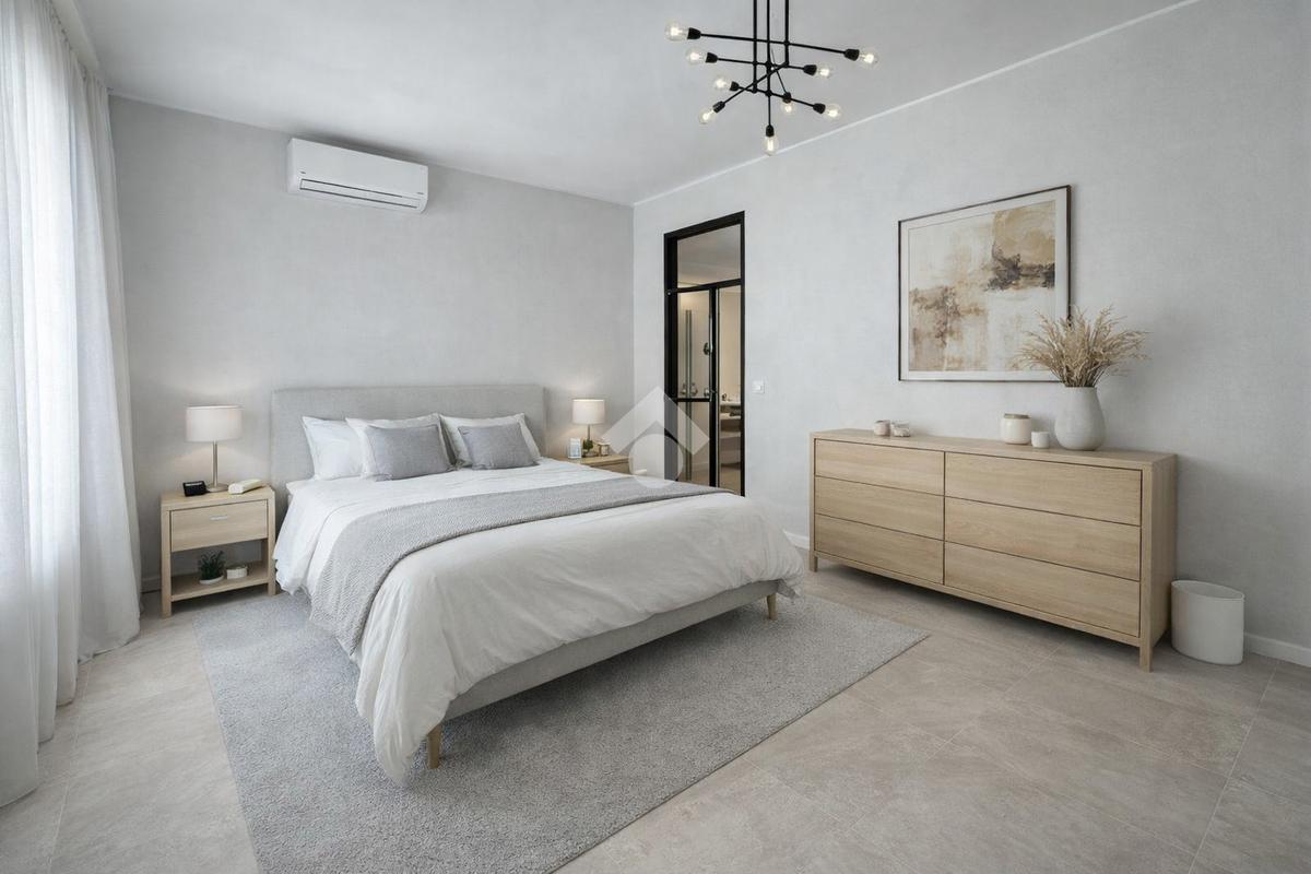 L’ immobile è rifinito con serramenti in PVC con doppio vetro ed è dotato di alcune tapparelle motorizzate, oltre riscaldamento centralizzato. Altri confort tra cui impianto di climatizzazione caldo/freddo e porta blindata.