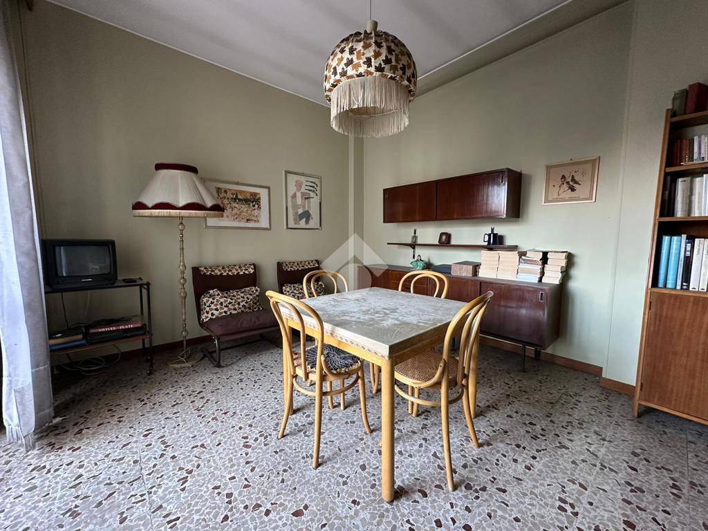 L'abitazione vanta di generose metrature, attualmente è suddivisa in ingresso, cucina abitabile, luminoso soggiorno con balcone, disimpegno, bagno finestrato e camera matrimoniale con secondo balcone.